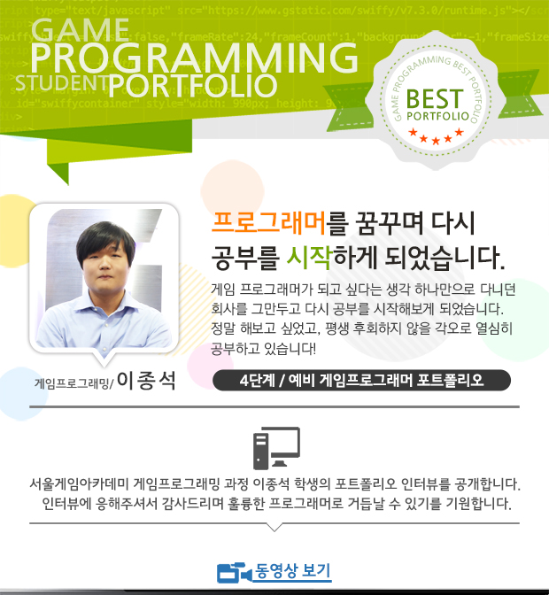 | [이종석] 프로그래머를 꿈꾸며 다시 공부를 시작하게 되었습니다. | |||
