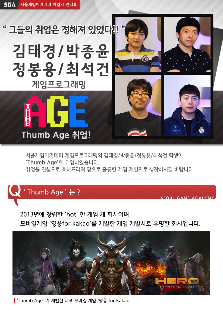 서울게임아카데미 게임프로그래밍학과 게임프로그래머 김태영,박종윤,정봉용,최석건 ( 썸에이지 취업 )