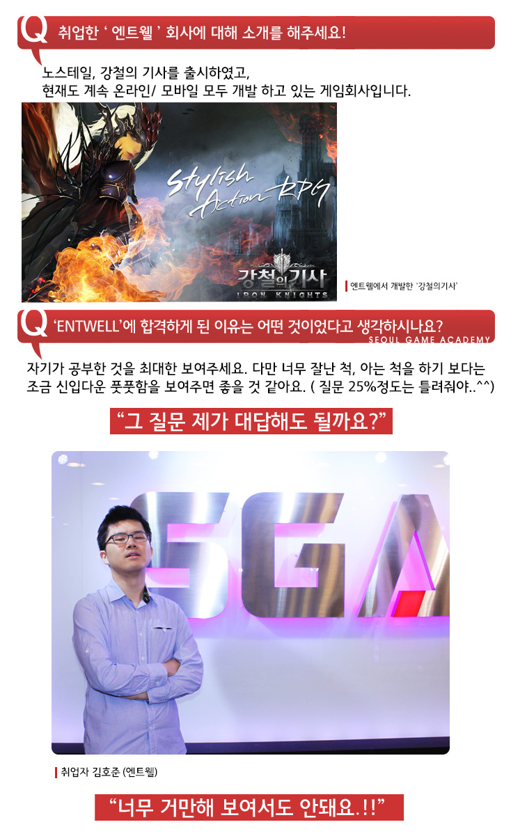 서울게임아카데미 게임프로그래밍학과 게임프로그래머 김호준 ( 엔트웰 취업 )